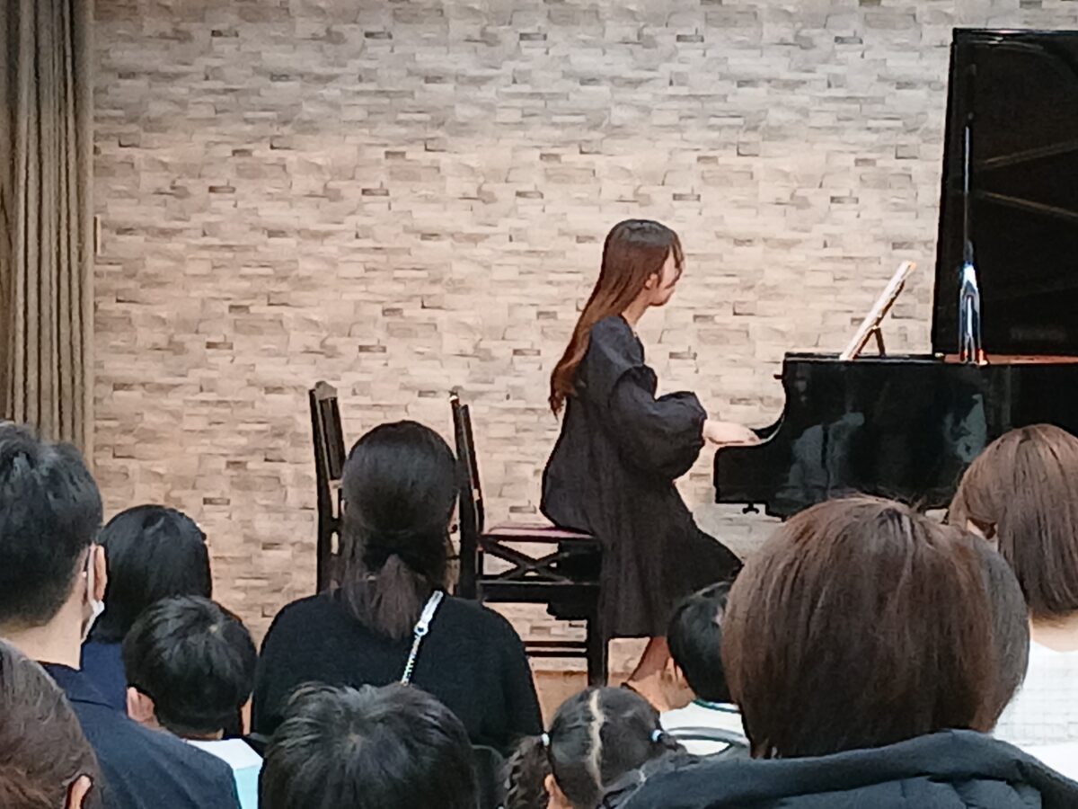 演奏順は、学年年齢を考慮せず、あみだくじで決めました。なので、大学生が、年少さんと年中さんにはさまれての演奏、とっても面白かったです。